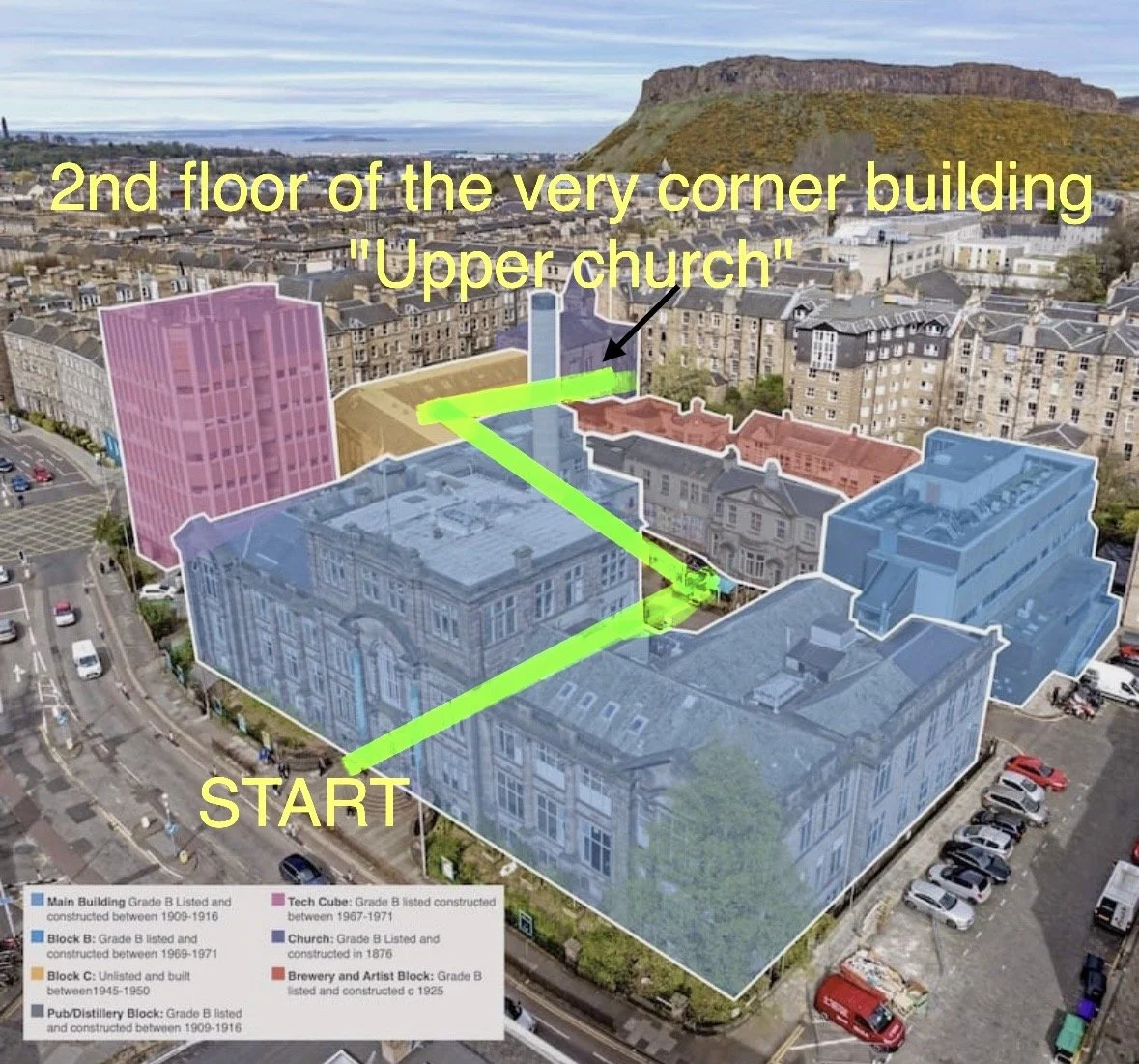 (We are in the Upper church on the 2nd floor which is at the very back corner of summerhall, enter the main summerhall entrance and go straight out into the first courtyard and take the first left, walk down that alley which leads to another smaller courtyard, cross that courtyard to the far corner door go inside and up to the top/second floor to the "upper church") Video walk through and map is below.